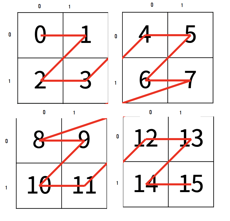 여기서 가장 앞에 위치한 것은 각 0, 4,8,12를 의미한다.