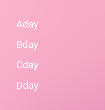 "Aday","Bday","Cday","Dday"