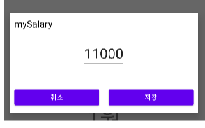 1100은 메인액티비티에서 전달받은 값이고, 값을 수정해서 저장하면 메인액티비티의 textview 바뀌는 다이얼로그를 구현해 보았다.