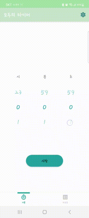 SetNumberPicker의 getter를 사용하여 numberPicker의 설정값을 가지고 와서 변수에 저장해주고 모든 수의 값이 0이 아니라면 타이머를 시작하는 함수를 호출하도록 하였다.