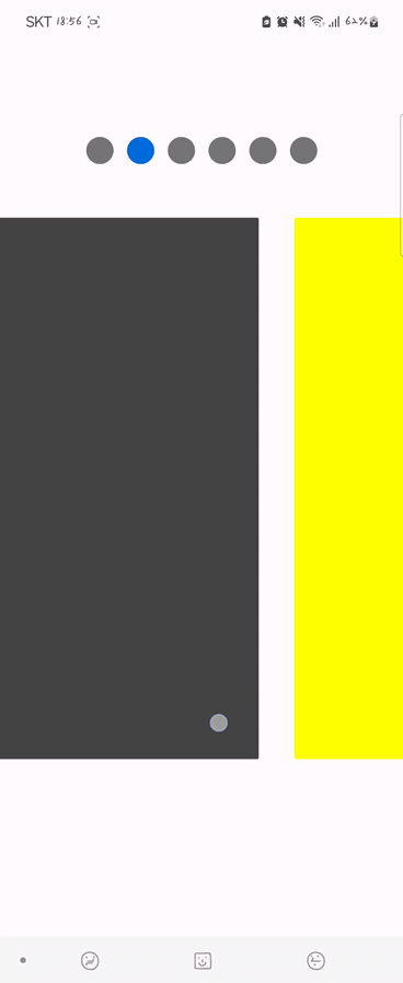 그러면 마지막으로 할 일은 뷰페이저의 페이지가 선택되었을 때 만들어둔 selectDot함수를 호출하면 끝난다.