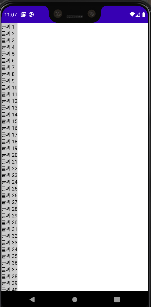 0부터 49 까지 50개가 출력이 되었고, 스크롤도 가능하다.